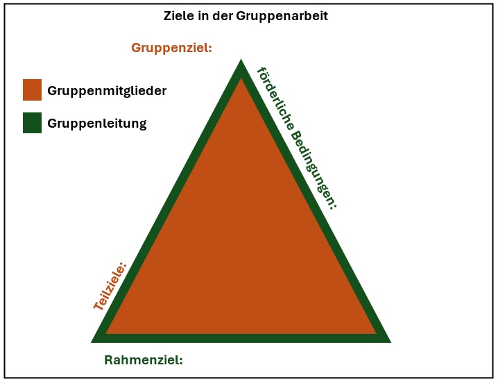 Im Dreieck kannst Du das Rahmenziel, das Gruppenziel, die Teilziele und hierfür förderliche Bedingungen eintragen: